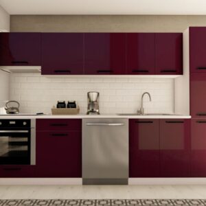 300 cm DESTAN HAZIR MUTFAK DOLABI ASPİRATÖR, ANKASTRE ve KİLER MODÜLLÜ PARLAK MÜRDÜM