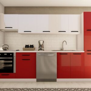 300 cm DOĞA HAZIR MUTFAK DOLABI ASPİRATÖR, ANKASTRE ve KİLER MODÜLLÜ PARLAK BEYAZ ve KIRMIZI