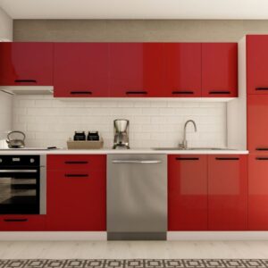 300 cm DORUK HAZIR MUTFAK DOLABI ASPİRATÖR, ANKASTRE ve KİLER MODÜLLÜ PARLAK KIRMIZI