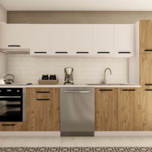 300 cm EKİN HAZIR MUTFAK DOLABI ASPİRATÖR, ANKASTRE ve KİLER MODÜLLÜ BEYAZ ve ATLANTİK ÇAM