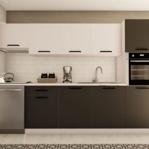 300 cm FİLİZ HAZIR MUTFAK DOLABI ASPİRATÖR, ANKASTRE ve KİLER MODÜLLÜ BEYAZ ve ANTRASİT