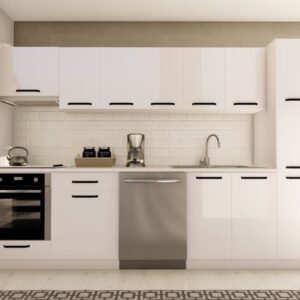 300 cm AKASYA HAZIR MUTFAK DOLABI ASPİRATÖR, ANKASTRE ve KİLER MODÜLLÜ PARLAK BEYAZ