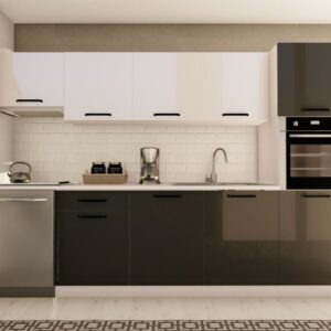 300 cm KÜBRA HAZIR MUTFAK DOLABI ASPİRATÖR ve ANKASTRE KİLER MODÜLLÜ PARLAK BEYAZ ve ANTRASİT