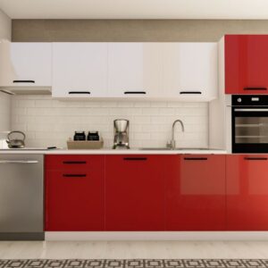 300 cm KARANFİL HAZIR MUTFAK DOLABI ASPİRATÖR ve ANKASTRE KİLER MODÜLLÜ PARLAK BEYAZ ve KIRMIZI
