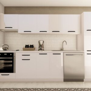 300 cm MERVE HAZIR MUTFAK DOLABI ASPİRATÖR, ANKASTRE ve KİLER MODÜLLÜ PARLAK BEYAZ