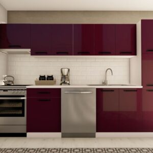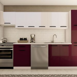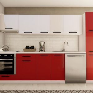 300 cm NİL HAZIR MUTFAK DOLABI ASPİRATÖR, ANKASTRE ve KİLER MODÜLLÜ PARLAK BEYAZ ve KIRMIZI