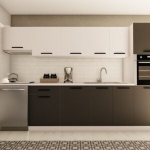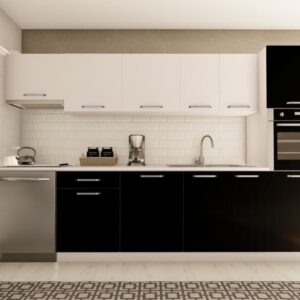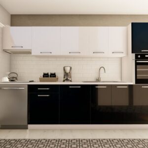 320 cm ŞİMAL HAZIR MUTFAK DOLABI ASPİRATÖR ve ANKASTRE KİLER MODÜLLÜ PARLAK BEYAZ ve SİYAH