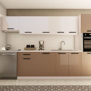 320 cm SELİN HAZIR MUTFAK DOLABI ASPİRATÖR ve ANKASTRE KİLER MODÜLLÜ PARLAK BEYAZ ve CAPPUCCINO