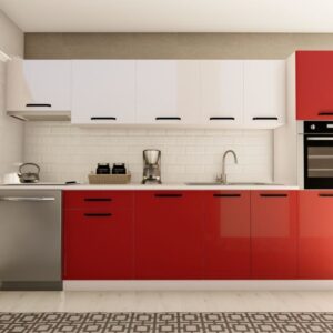 320 cm ÖZLEM HAZIR MUTFAK DOLABI ASPİRATÖR ve ANKASTRE KİLER MODÜLLÜ PARLAK BEYAZ ve KIRMIZI
