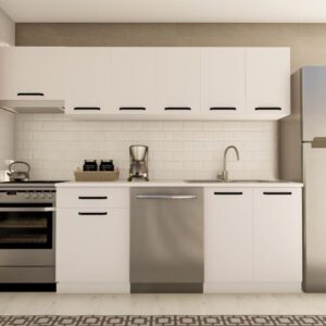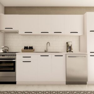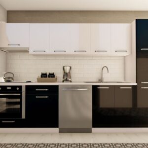 300 cm ARMAĞAN HAZIR MUTFAK DOLABI ASPİRATÖR, ANKASTRE ve KİLER MODÜLLÜ PARLAK BEYAZ ve SİYAH