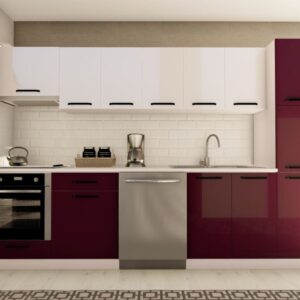 300 cm ALEYNA HAZIR MUTFAK DOLABI ASPİRATÖR, ANKASTRE ve KİLER MODÜLLÜ PARLAK BEYAZ ve MÜRDÜM