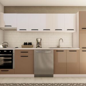 300 cm ALMİRA HAZIR MUTFAK DOLABI ASPİRATÖR, ANKASTRE ve KİLER MODÜLLÜ PARLAK BEYAZ ve CAPPUCCİNO