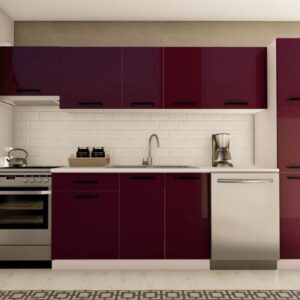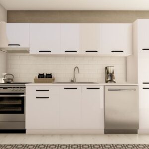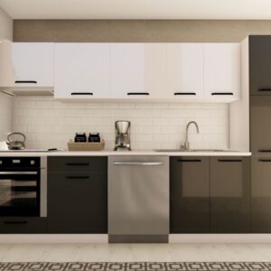 300 cm ÇİSE HAZIR MUTFAK DOLABI ASPİRATÖR, ANKASTRE ve KİLER MODÜLLÜ PARLAK BEYAZ ve ANTRASİT