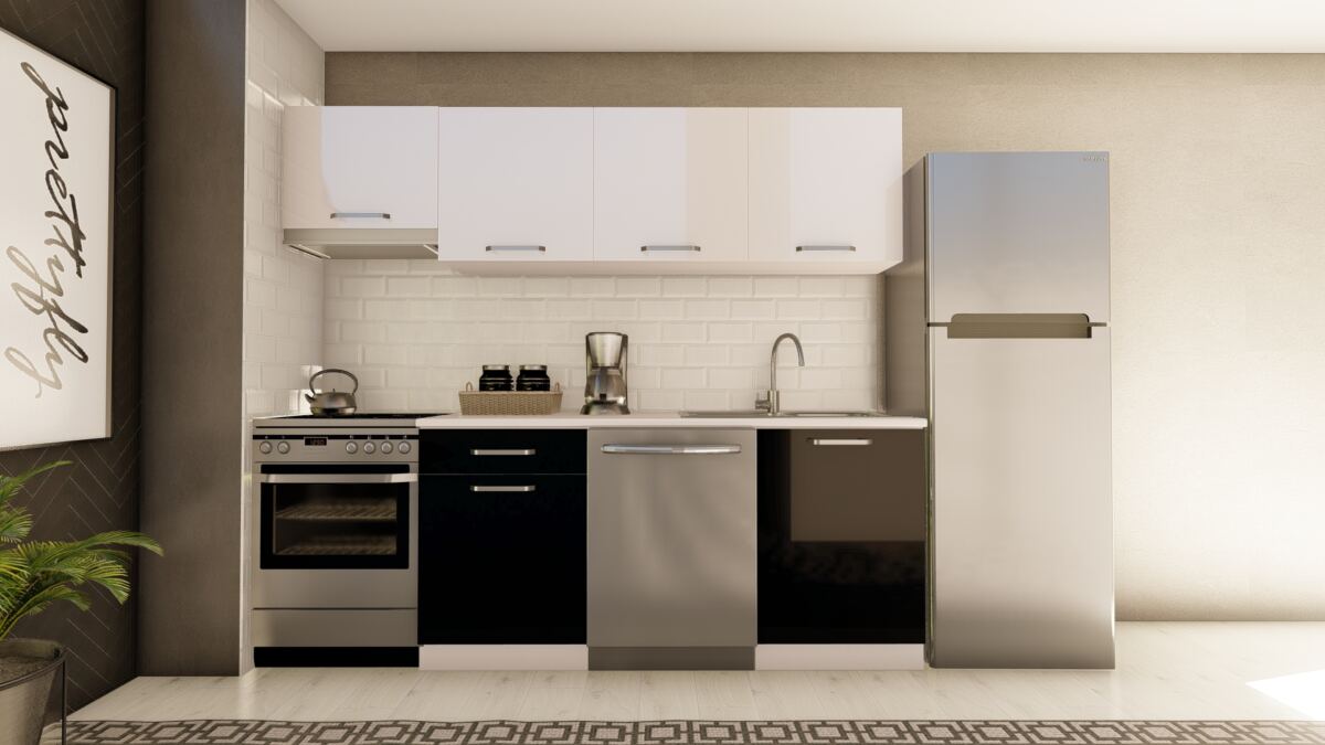 VİSAS CONCEPT _ 240 cm MASAL HAZIR MUTFAK DOLABI ASPİRATÖR MODÜLLÜ PARLAK BEYAZ ve SİYAH