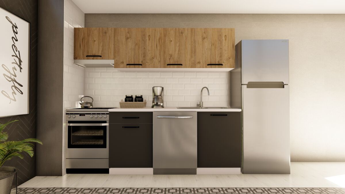 VİSAS CONCEPT _ 240 cm MERCAN HAZIR MUTFAK DOLABI ASPİRATÖR MODÜLLÜ ATLANTİK ÇAM ve ANTRASİT