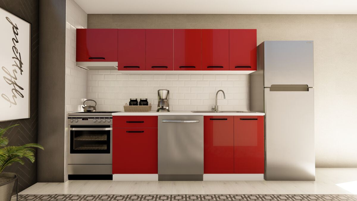 260 cm HAYAL HAZIR MUTFAK DOLABI ASPİRATÖR MODÜLLÜ PARLAK KIRMIZI