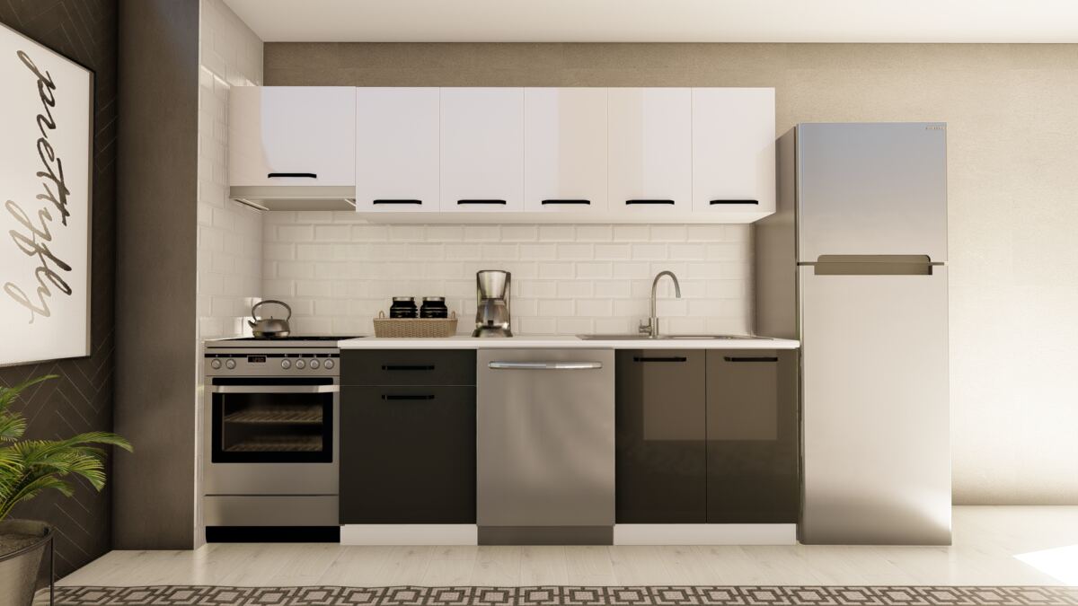 VİSAS CONCEPT _ 260 cm SALKIM HAZIR MUTFAK DOLABI ASPİRATÖR MODÜLLÜ PARLAK BEYAZ ve ANTRASİT