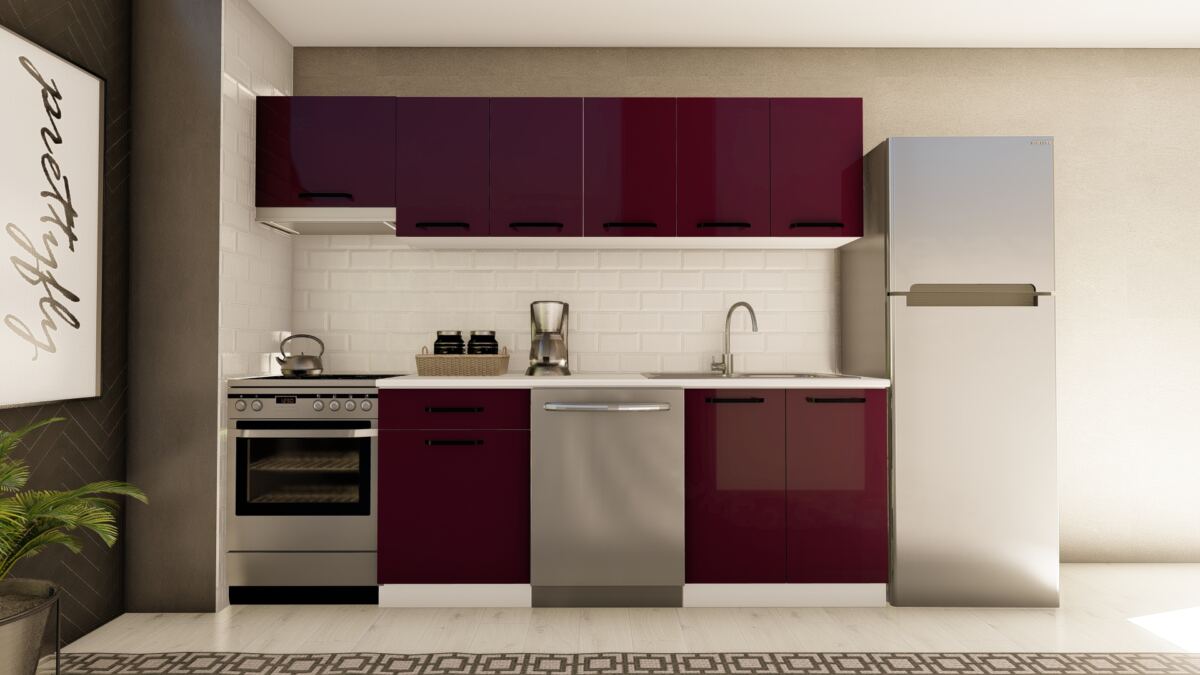 VİSAS CONCEPT _ 260 cm TUTKU HAZIR MUTFAK DOLABI ASPİRATÖR MODÜLLÜ PARLAK MÜRDÜM
