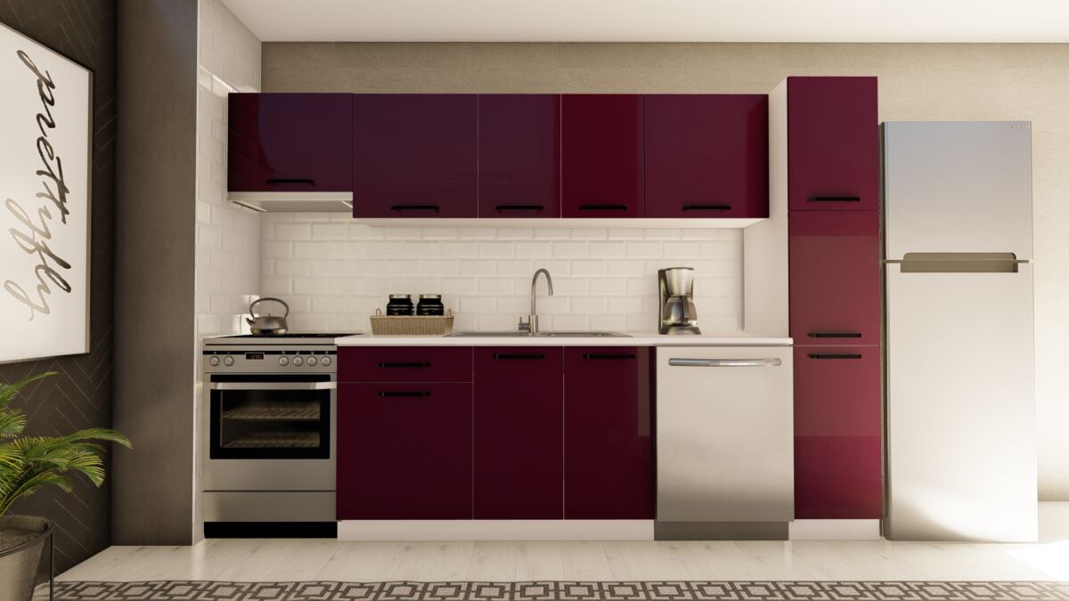 VİSAS CONCEPT _ 300 cm BERRAK HAZIR MUTFAK DOLABI ASPİRATÖR ve KİLER MODÜLLÜ PARLAK MÜRDÜM