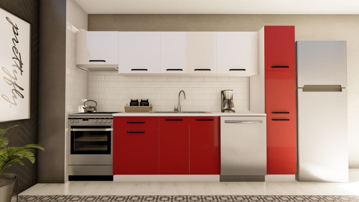 VİSAS CONCEPT _ 300 cm ESRA HAZIR MUTFAK DOLABI ASPİRATÖR ve KİLER MODÜLLÜ PARLAK BEYAZ ve KIRMIZI