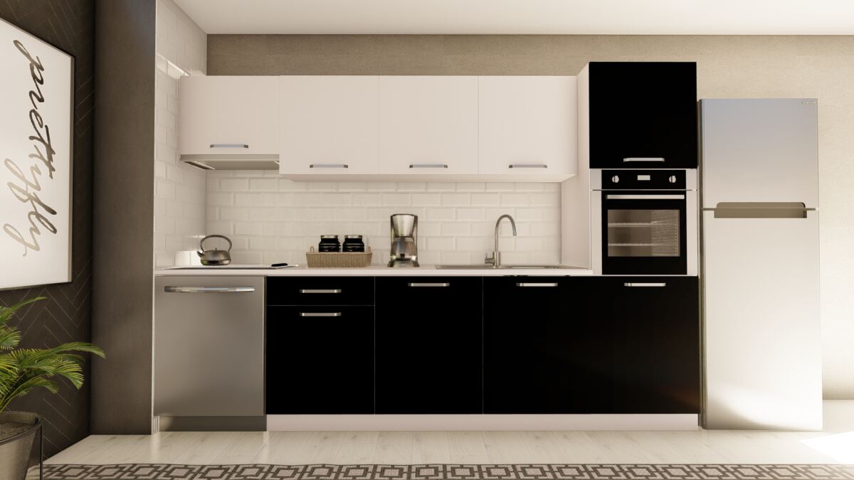 VİSAS CONCEPT _ 300 cm FULYA HAZIR MUTFAK DOLABI ASPİRATÖR ve ANKASTRE KİLER MODÜLLÜ BEYAZ ve SİYAH