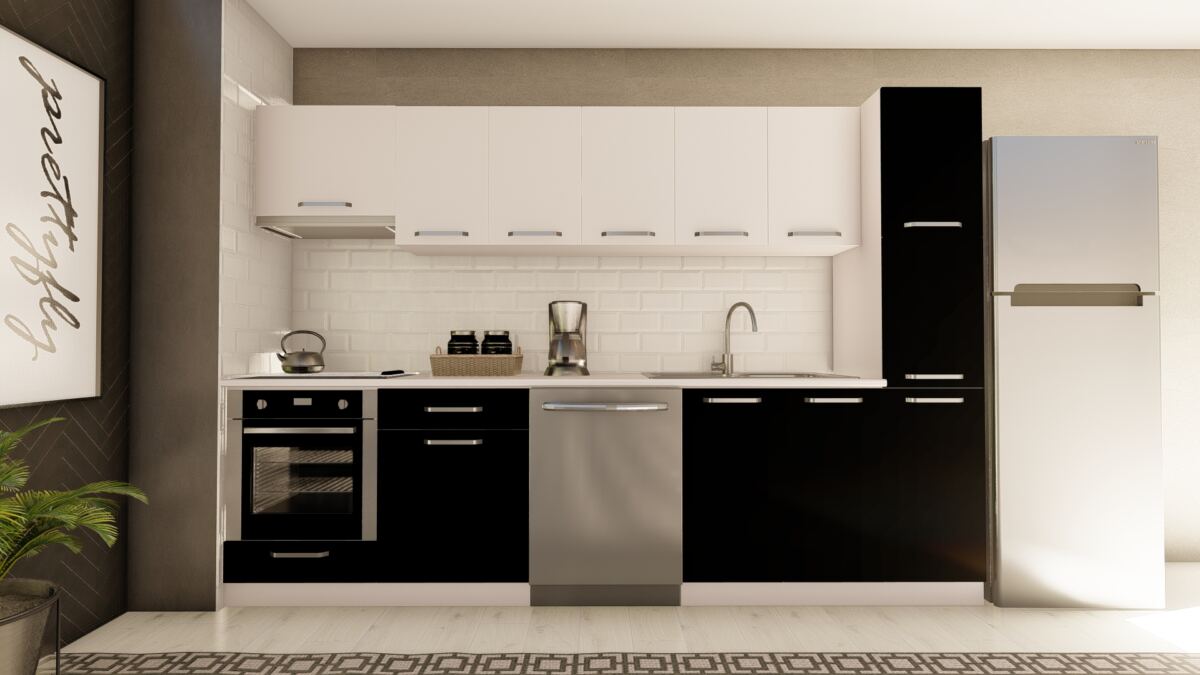 VİSAS CONCEPT _ 300 cm LOKMAN HAZIR MUTFAK DOLABI ASPİRATÖR, ANKASTRE ve KİLER MODÜLLÜ BEYAZ ve SİYAH