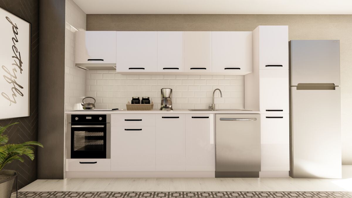 VİSAS CONCEPT _ 300 cm MERVE HAZIR MUTFAK DOLABI ASPİRATÖR, ANKASTRE ve KİLER MODÜLLÜ PARLAK BEYAZ