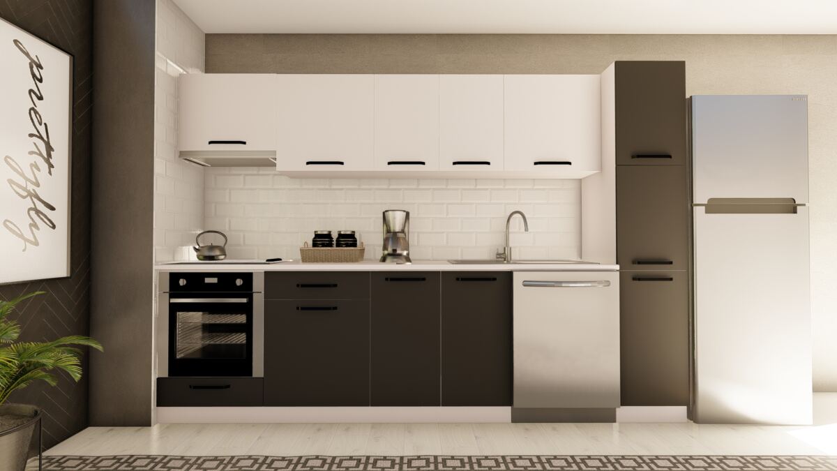 VİSAS CONCEPT _ 300 cm SEHER HAZIR MUTFAK DOLABI ASPİRATÖR, ANKASTRE ve KİLER MODÜLLÜ BEYAZ ve ANTRASİT
