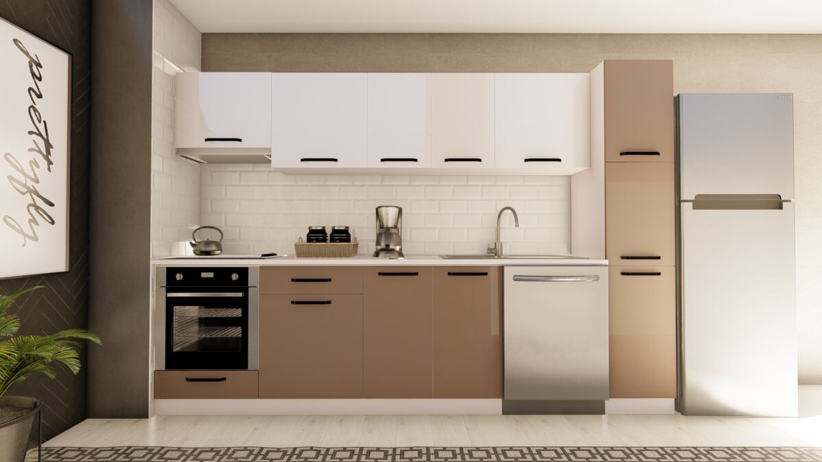 VİSAS CONCEPT _ 300 cm SEVİM HAZIR MUTFAK DOLABI ASPİRATÖR, ANKASTRE ve KİLER MODÜLLÜ PARLAK BEYAZ ve CAPPUCCINO