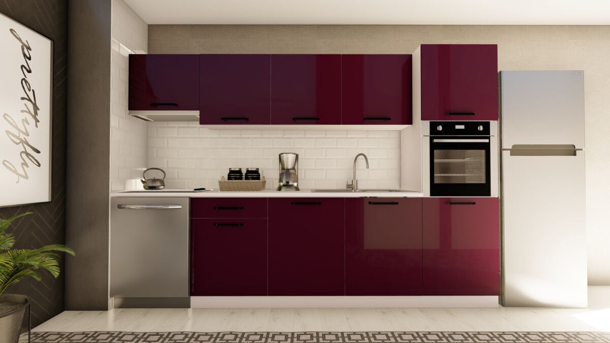VİSAS CONCEPT _ 300 cm ŞEYMA HAZIR MUTFAK DOLABI ASPİRATÖR ve ANKASTRE KİLER MODÜLLÜ PARLAK MÜRDÜM