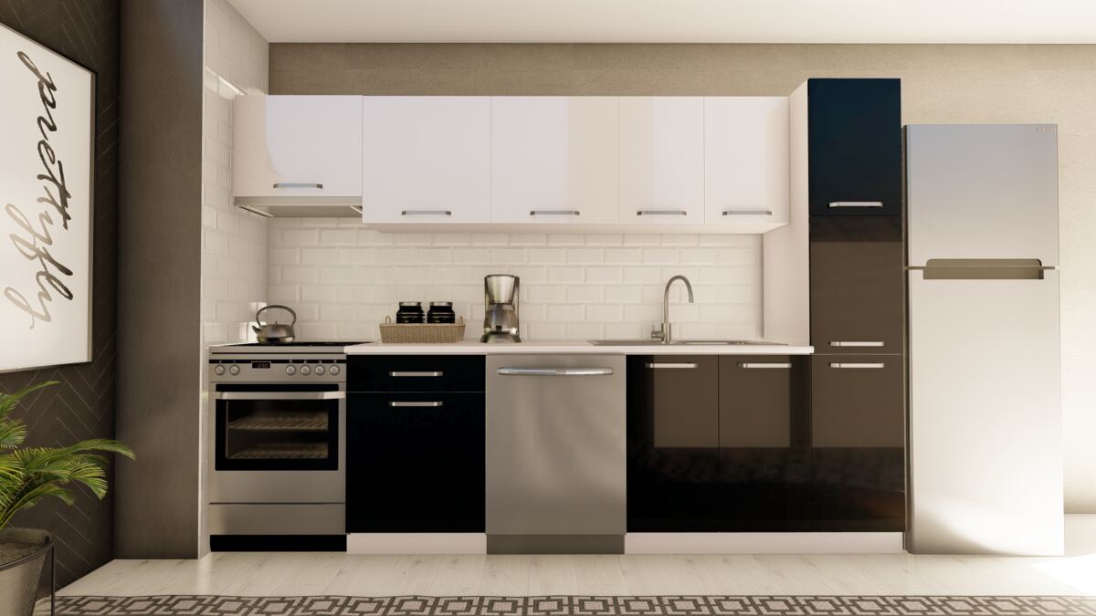 VİSAS CONCEPT _ 300 cm SIRMA HAZIR MUTFAK DOLABI ASPİRATÖR ve KİLER MODÜLLÜ PARLAK BEYAZ ve SİYAH