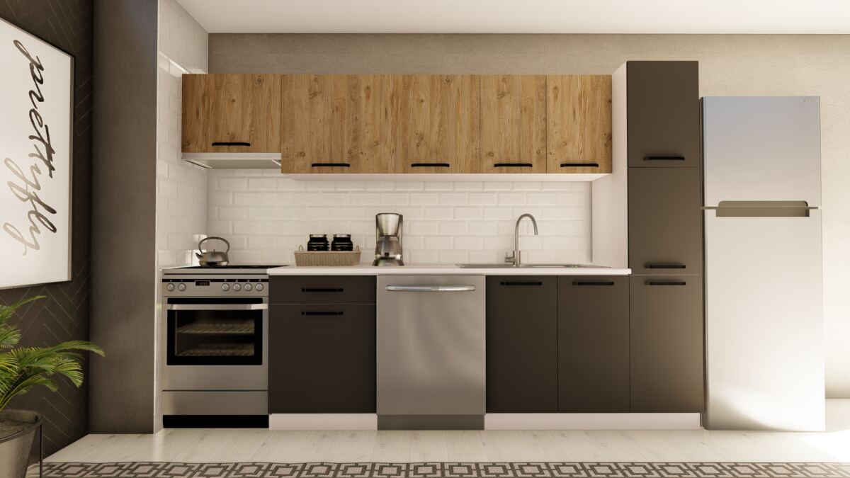 300 cm ULUS HAZIR MUTFAK DOLABI ASPİRATÖR ve KİLER MODÜLLÜ ATLANTİK ÇAM ve ANTRASİT
