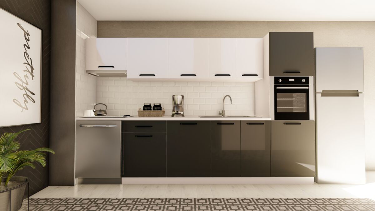 VİSAS CONCEPT _ 320 cm AYNUR HAZIR MUTFAK DOLABI ASPİRATÖR ve ANKASTRE KİLER MODÜLLÜ PARLAK BEYAZ ve ANTRASİT