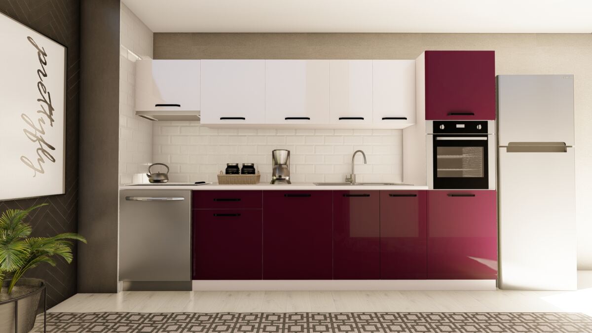 320 cm DİDEM HAZIR MUTFAK DOLABI ASPİRATÖR ve ANKASTRE KİLER MODÜLLÜ PARLAK BEYAZ ve MÜRDÜM