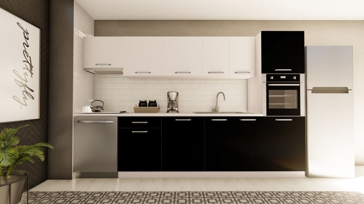 VİSAS CONCEPT _ 320 cm KAYRA HAZIR MUTFAK DOLABI ASPİRATÖR ve ANKASTRE KİLER MODÜLLÜ BEYAZ ve SİYAH