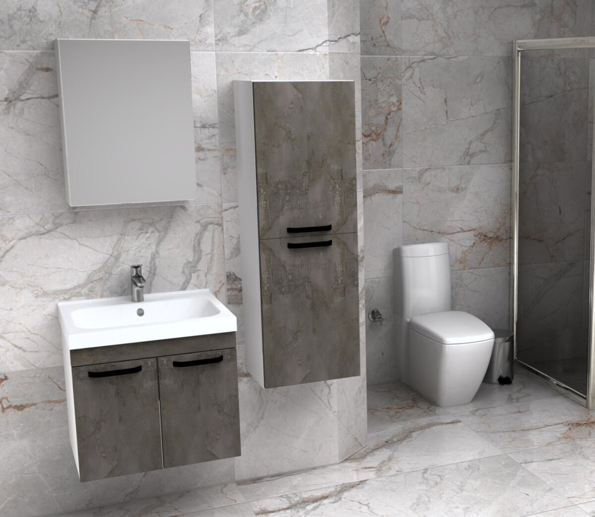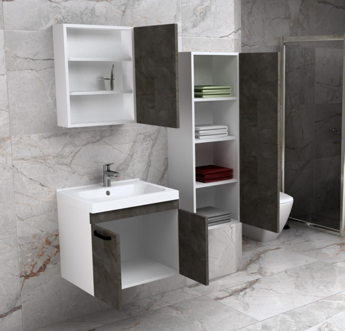 BAMBU 60’LIK HAZIR BANYO DOLABI DÜZ LAVABOLU, AYNALI VE BOY DOLABI