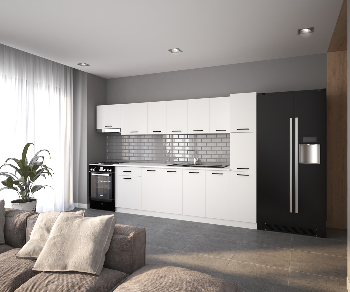 VİSAS CONCEPT_BULUT HAZIR MUTFAK DOLABI Kiler ve Aspiratör Modüllü Beyaz 320 cm