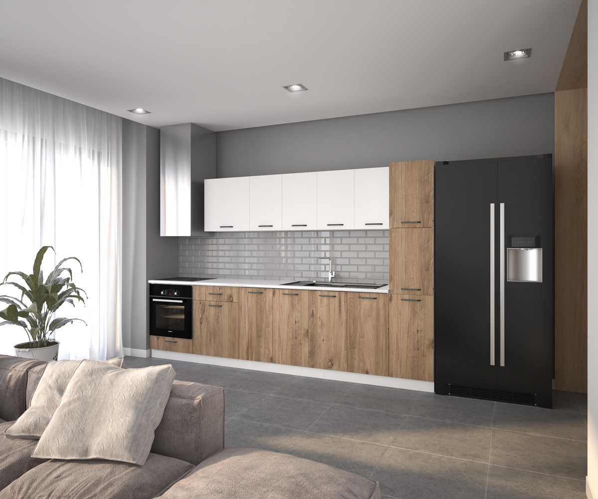 VİSAS CONCEPT_MELEK HAZIR MUTFAK DOLABI_Kiler ve Ankastre Modüllü_Beyaz ve Atlantik Çam_320 cm