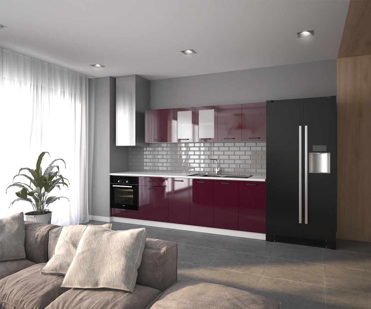 VİSAS CONCEPT_NİLÜFER HAZIR MUTFAK DOLABI_Parlak HIGH-GLOSS__ Ankastre Modüllü_Cam Kapaklı_Mürdüm_280 cm