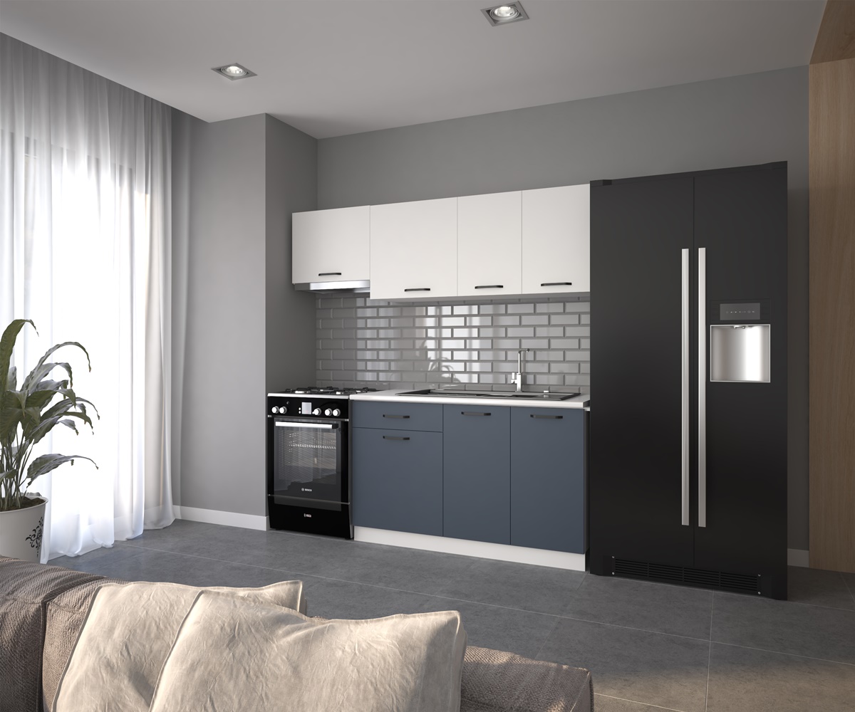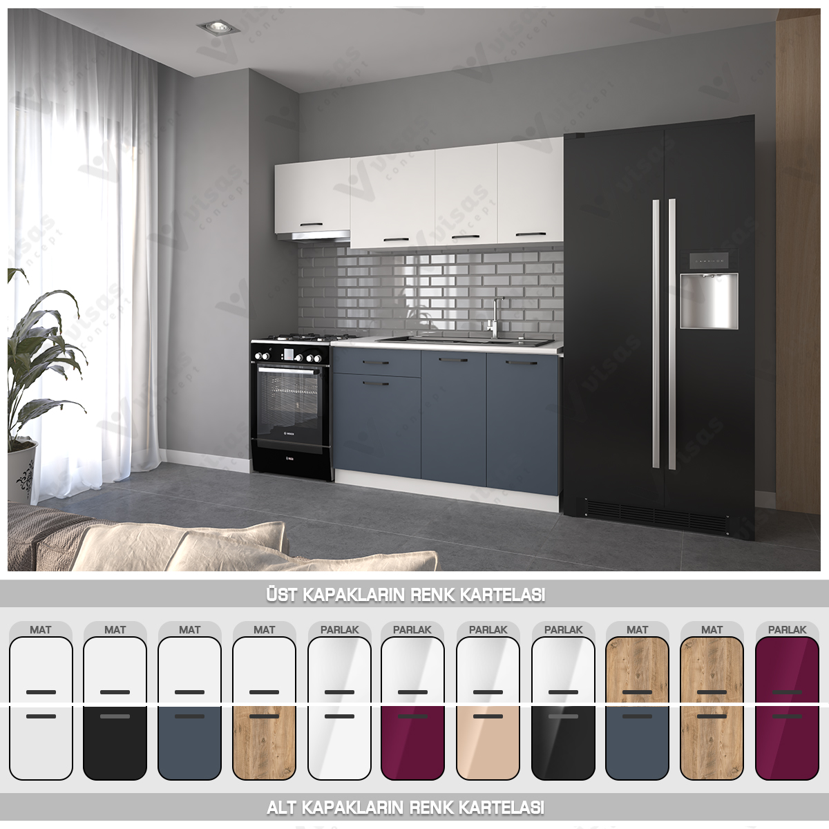 VİSAS CONCEPT_PINAR HAZIR MUTFAK DOLABI_Aspiratör Modüllü_Beyaz ve Antrasit Çam_200 cm