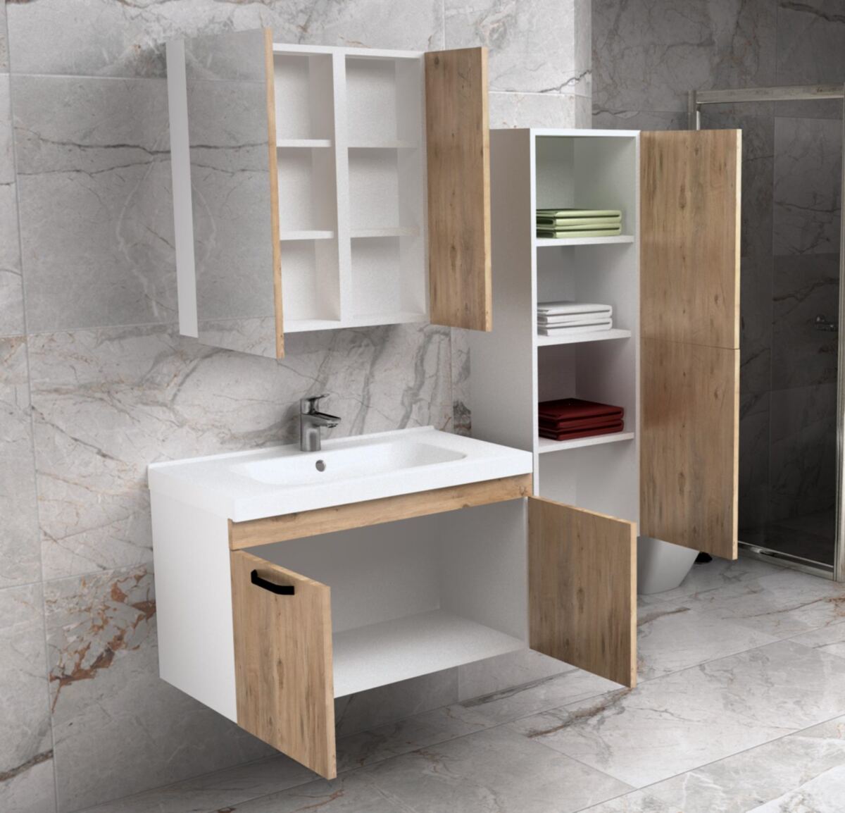TARÇIN 80’LİK HAZIR BANYO DOLABI DÜZ LAVABOLU, AYNALI VE BOY DOLABI